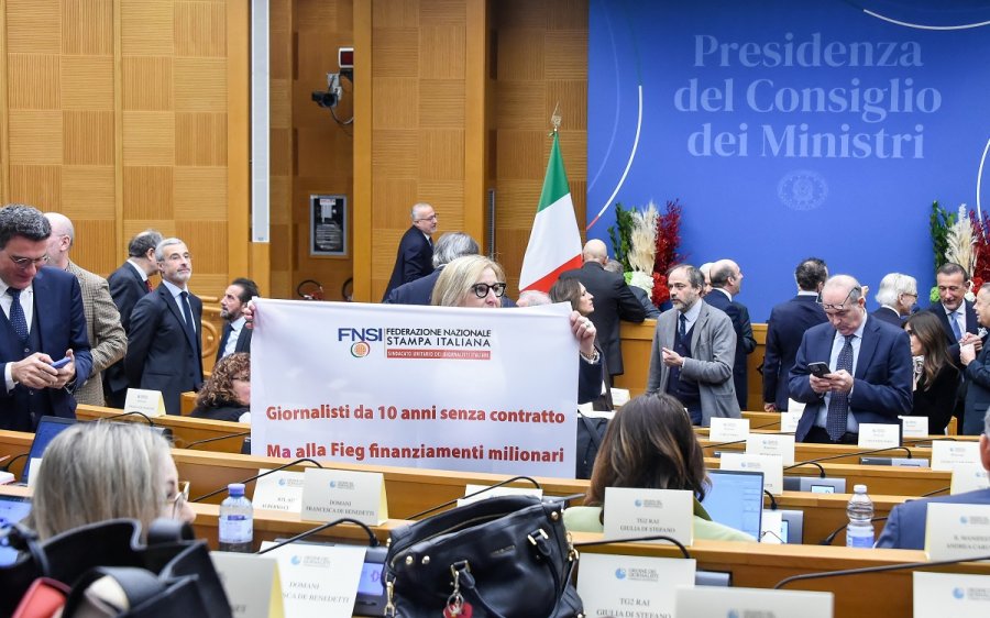 Fnsi: «Giornalisti da 10 anni senza contratto, alla Fieg finanziamenti milionari». Flash mob alla Camera